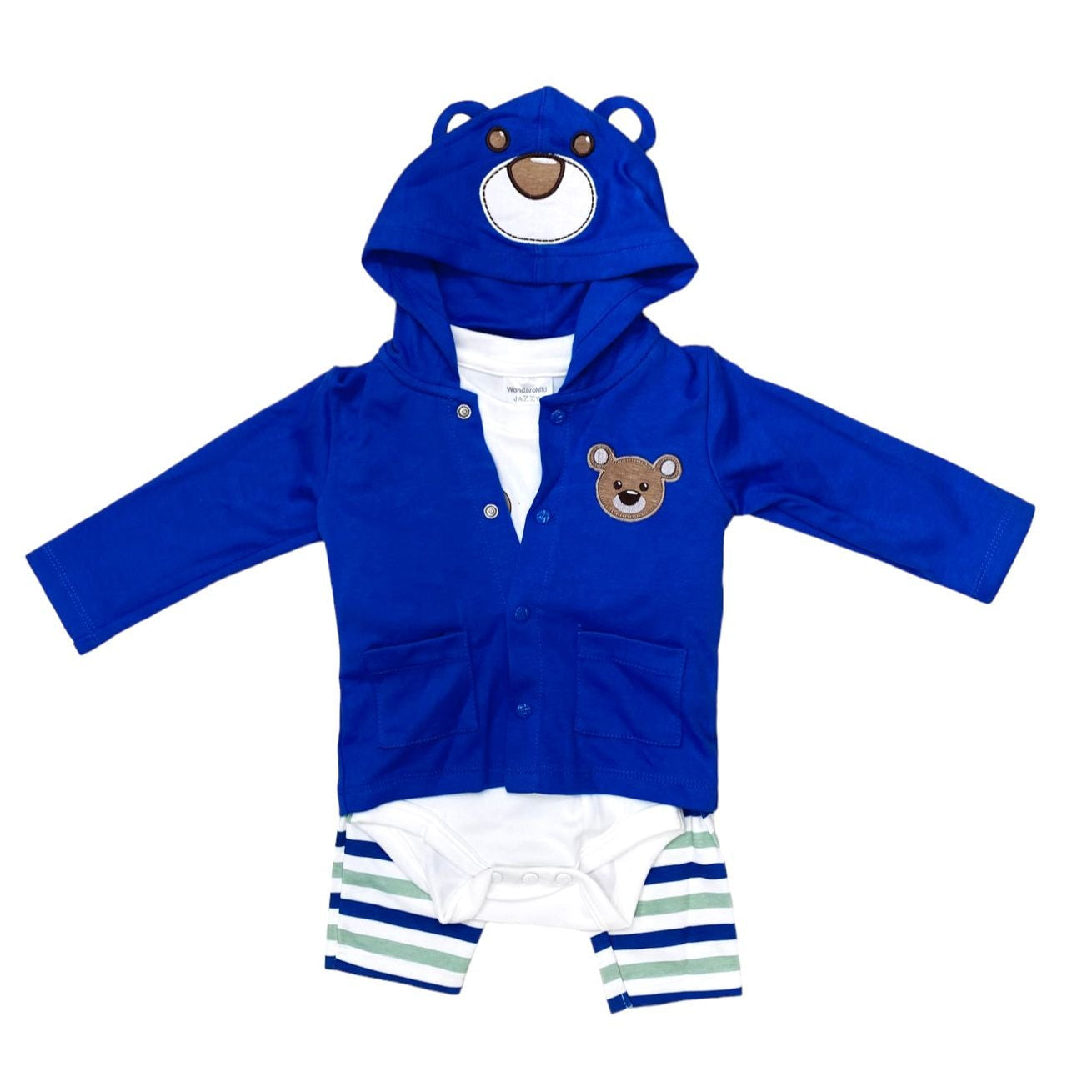 Introducing our 3PC Baby Boy Blue Bear Suit: A Bundle of Warmth and Adorableness for Your Little Explorer!