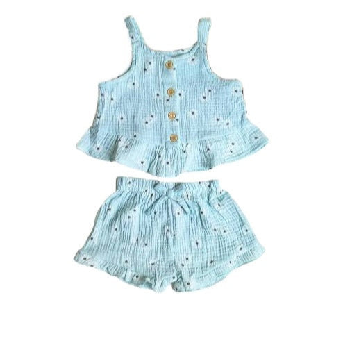 This 3PC Ten Top Suit is perfect for your little girl's summer wardrobe. Made from lightweight cotton material, it will keep her cool and comfortable all day long. The three-piece set includes a top, Short, and sun glasses, providing convenient and stylish options for any occasion. Upgrade your baby's wardrobe with this must-have piece.