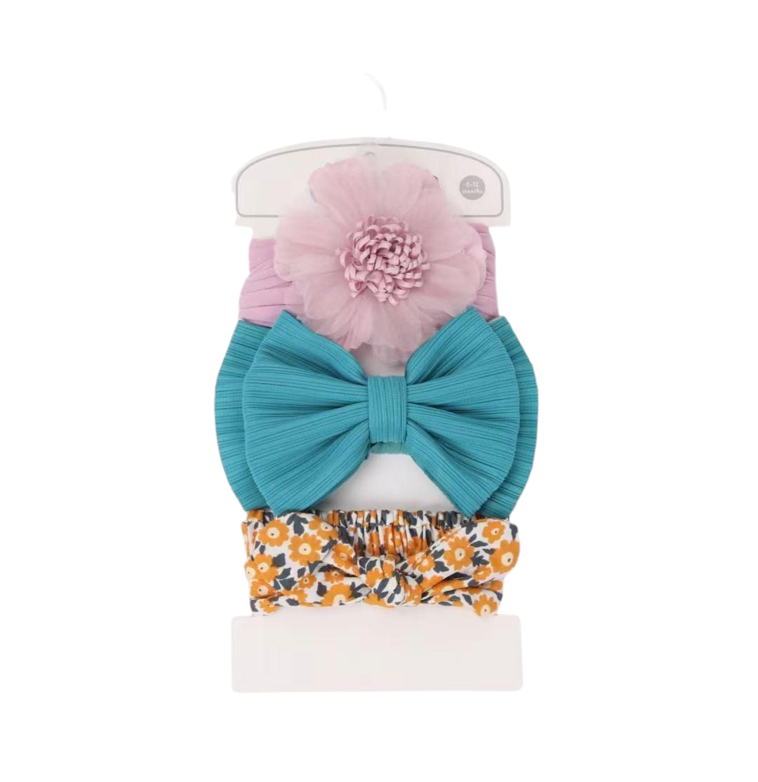 This 3PK Headband Set is perfect for your little girl. Made with soft and stretchy material, it provides comfort and style for your baby. With three different patterns, it can be easily paired with any outfit. Keep your baby girl looking stylish and comfortable with this set.