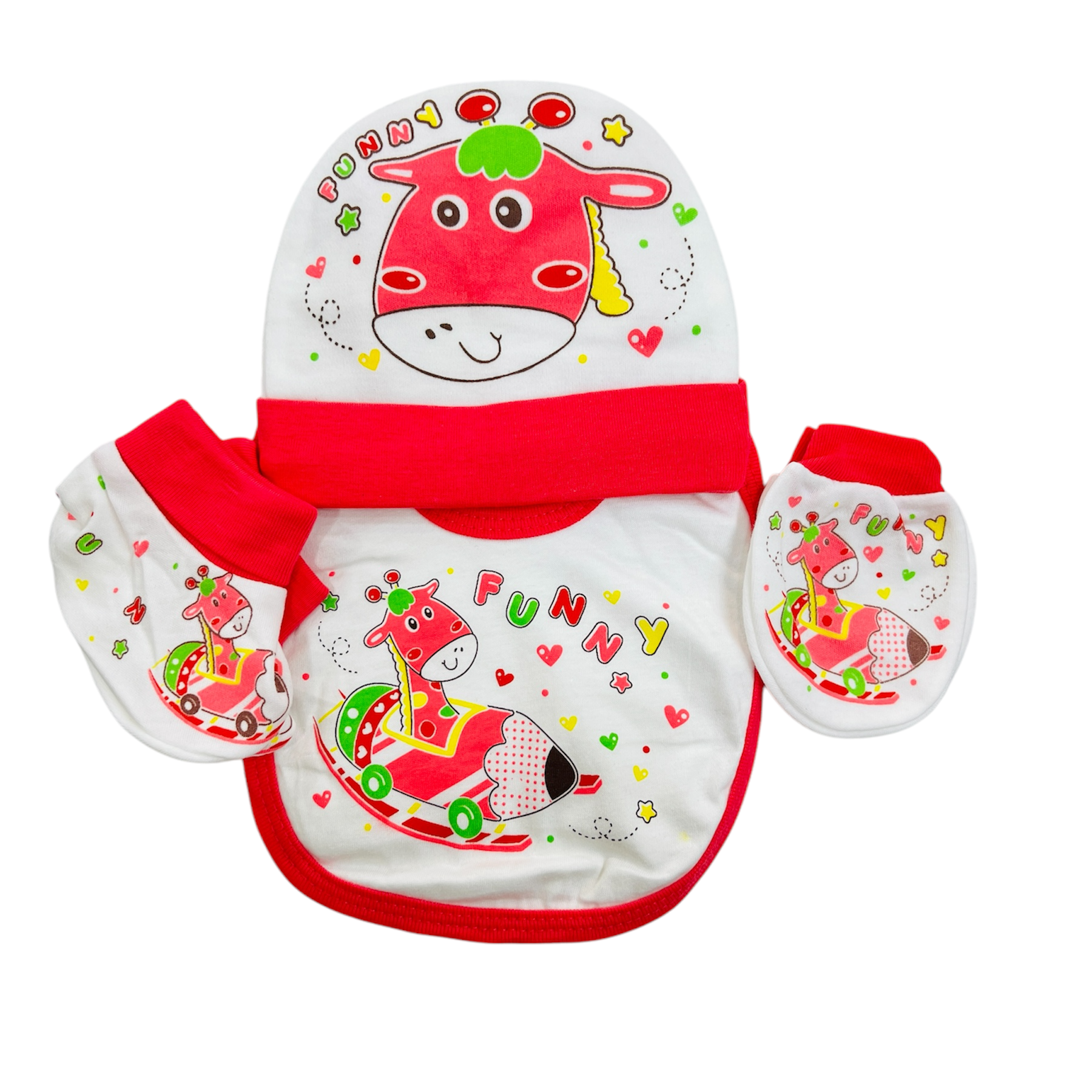 Included: Cap, Bib, Mittens & Booties