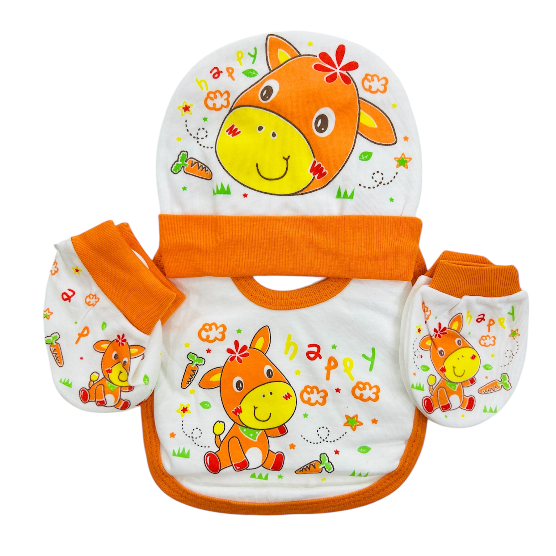 Introduce your infant to the wild with our 4 in 1 Zebra Set. The set includes a bib, cap, mittens, and booties, all designed with zebra-inspired prints. Keep your little one warm and stylish with this adorable set. Perfect for babies 0-6 months.