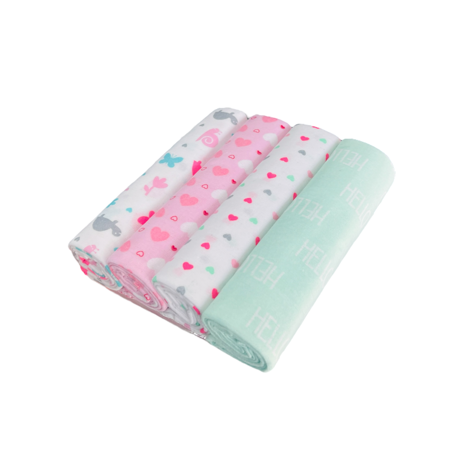 These 4PC receiving sheets made from cotton material are perfect for keeping your baby comfortable and cozy. The soft and breathable fabric is gentle on sensitive skin, providing a peaceful night's sleep. With four sheets included, you'll always have a clean and soft surface for your little one.