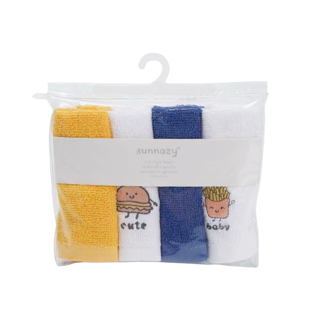 This 4-pack face towel set is perfect for any bathroom. Each towel is 25*25 cm and comes in three colors: yellow, blue, and white. Made from high-quality materials, these towels are soft, absorbent, and durable. Add a pop of color to your daily routine with these versatile face towels.