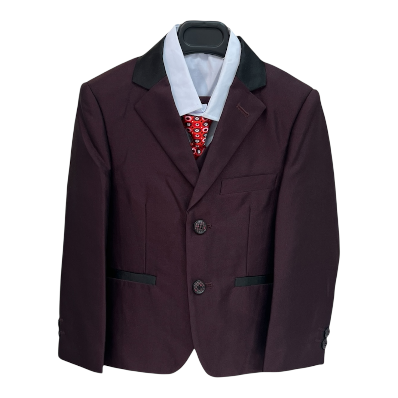 This 5PC Formal Pant Coat is the perfect addition to your baby boy's wardrobe. In a sophisticated maroon color, it exudes style and elegance. Made with high-quality materials, this set offers comfort and durability. Perfect for formal occasions, it will make your little one stand out.