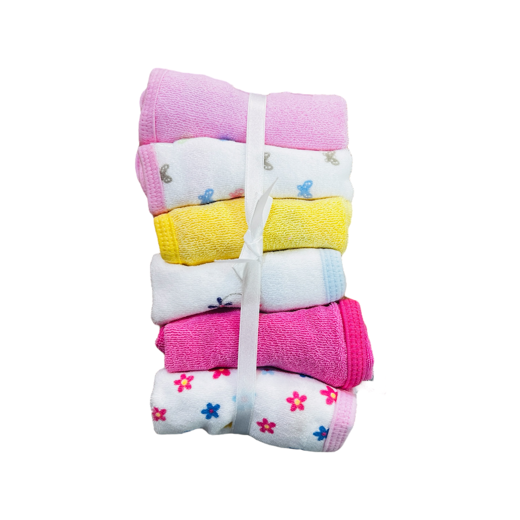 This 6-piece face towel set is perfect for infants. Made with soft and absorbent materials, it provides gentle and effective cleansing for delicate skin. Its compact size makes it convenient for on-the-go and everyday use. Keep your little one's face clean and fresh with this essential set.