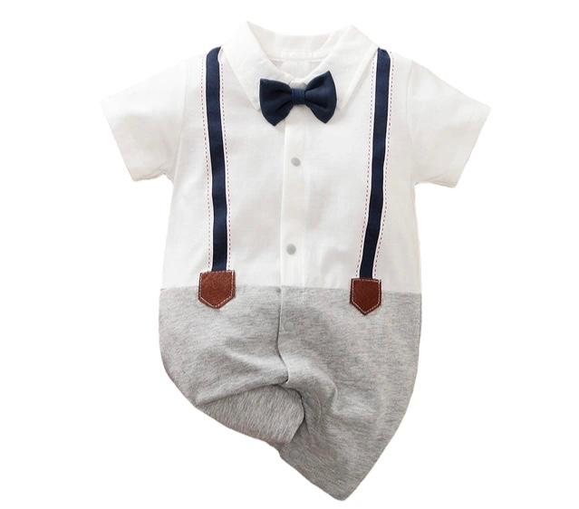 This Baby boy White Formal bow Romper is the perfect choice for formal occasions. Made with delicate and soft materials, this romper provides both comfort and style for your little one. The elegant bow adds a classic touch while the white color makes it versatile for any event.