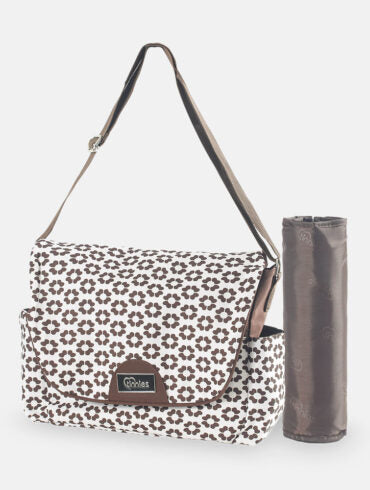 Compact & lightweight, this bag holds diapers, wipes, & a change of clothes. Insulated pocket, changing pad, crossbody strap. Perfect for quick trips!
