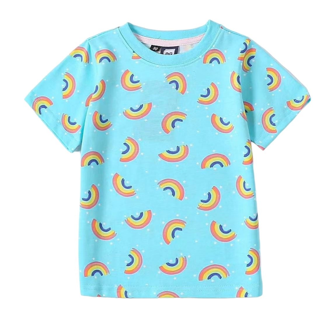 Expertly crafted from soft and breathable cotton material, our Baby Girl Rainbow T-Shirt combines comfort and style. Adorned with a vibrant rainbow design, this shirt is sure to bring joy to your little one. Perfect for everyday wear, this t-shirt is a must-have for any fashionable baby girl.