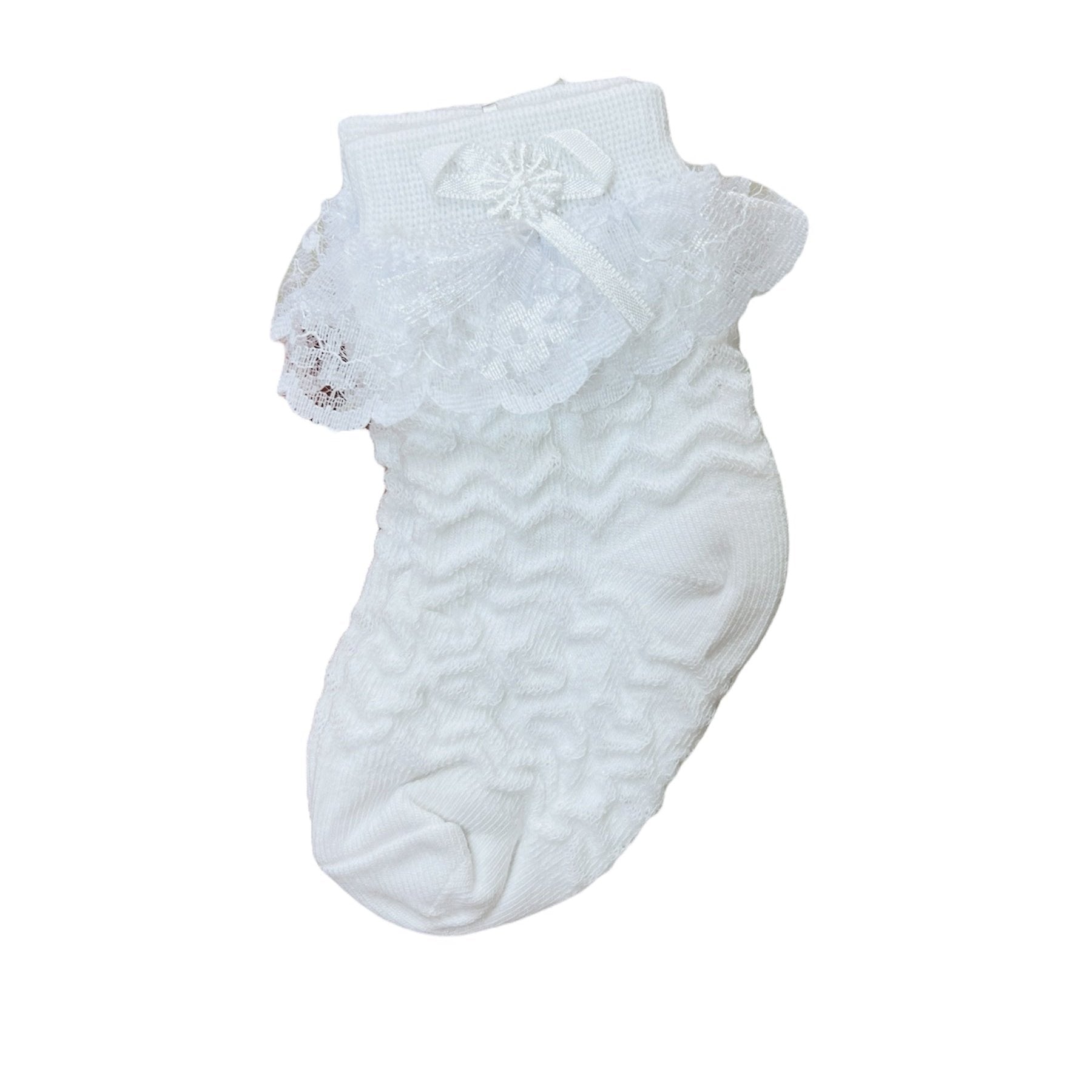 Baby Girl White Frill Bow Socks