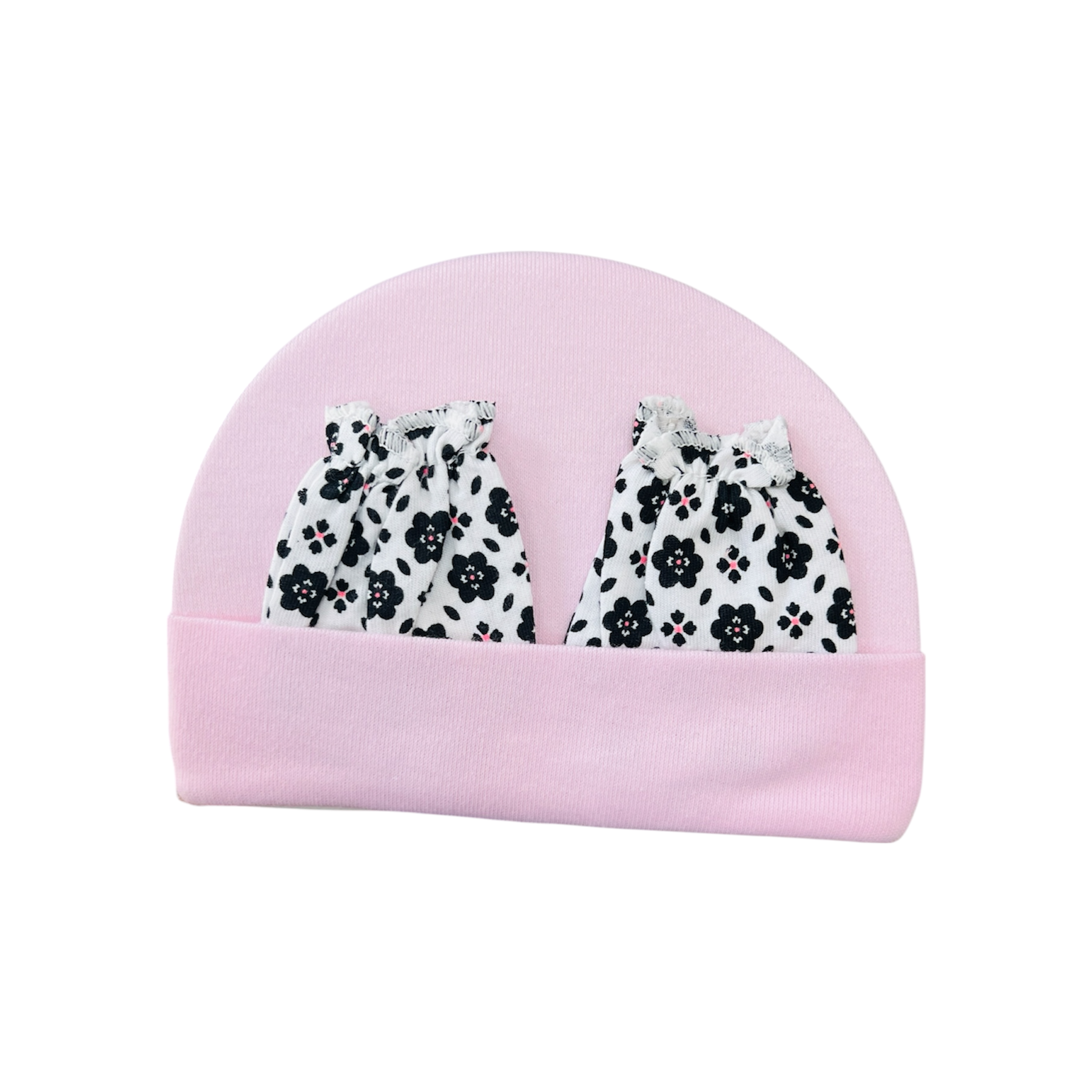 Baby Round Cap & Mittens Set – 100% Cotton (0–3 Months)