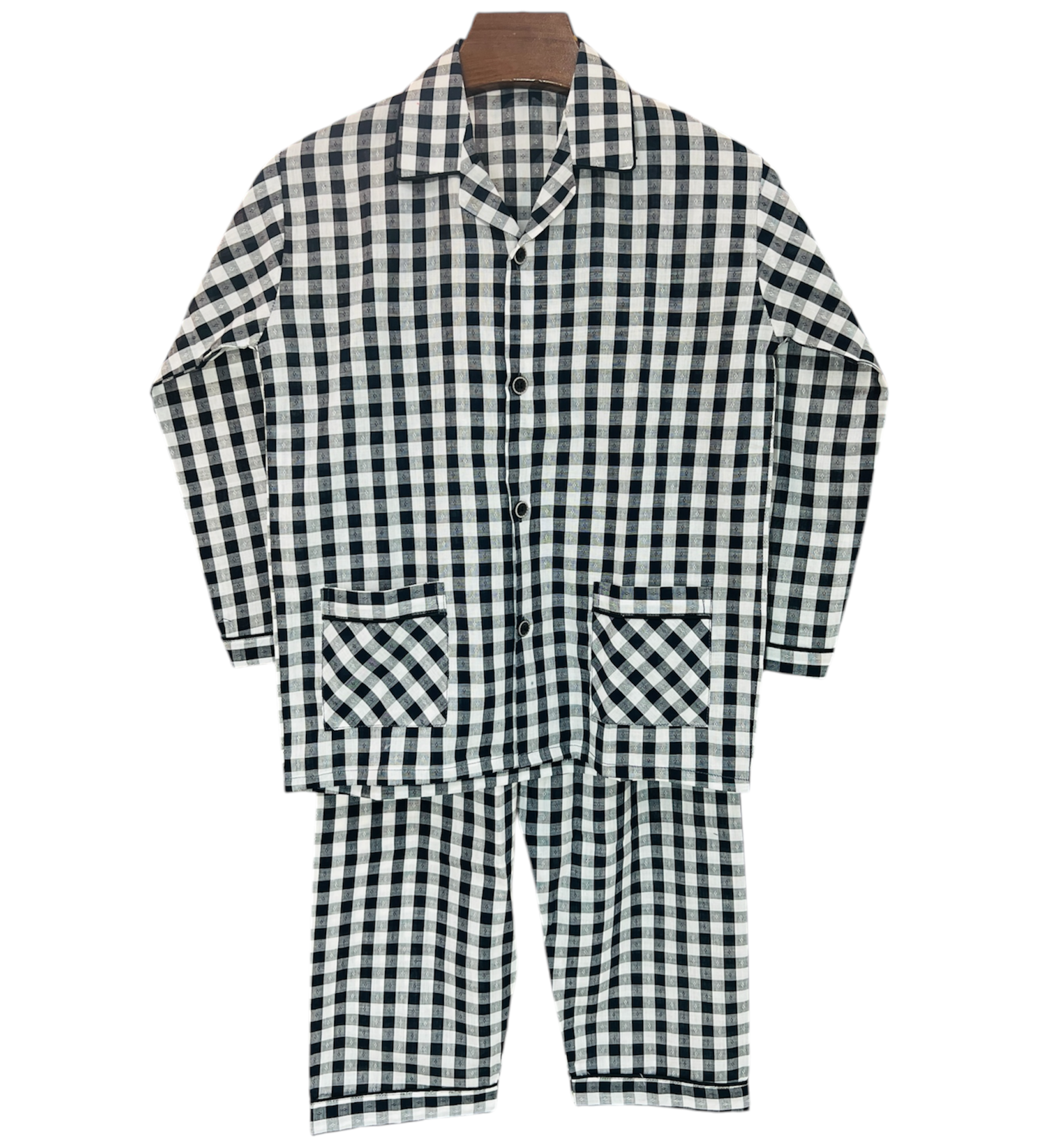 As a product expert, I highly recommend the Black Cheque Cotton Night Suit for its 100% cotton fabric and stylish black check pattern. It provides unmatched comfort and a fashionable look for a perfect night's sleep. Plus, the black color is versatile and easy to pair with other loungewear pieces. Experience the luxury of this night suit today.