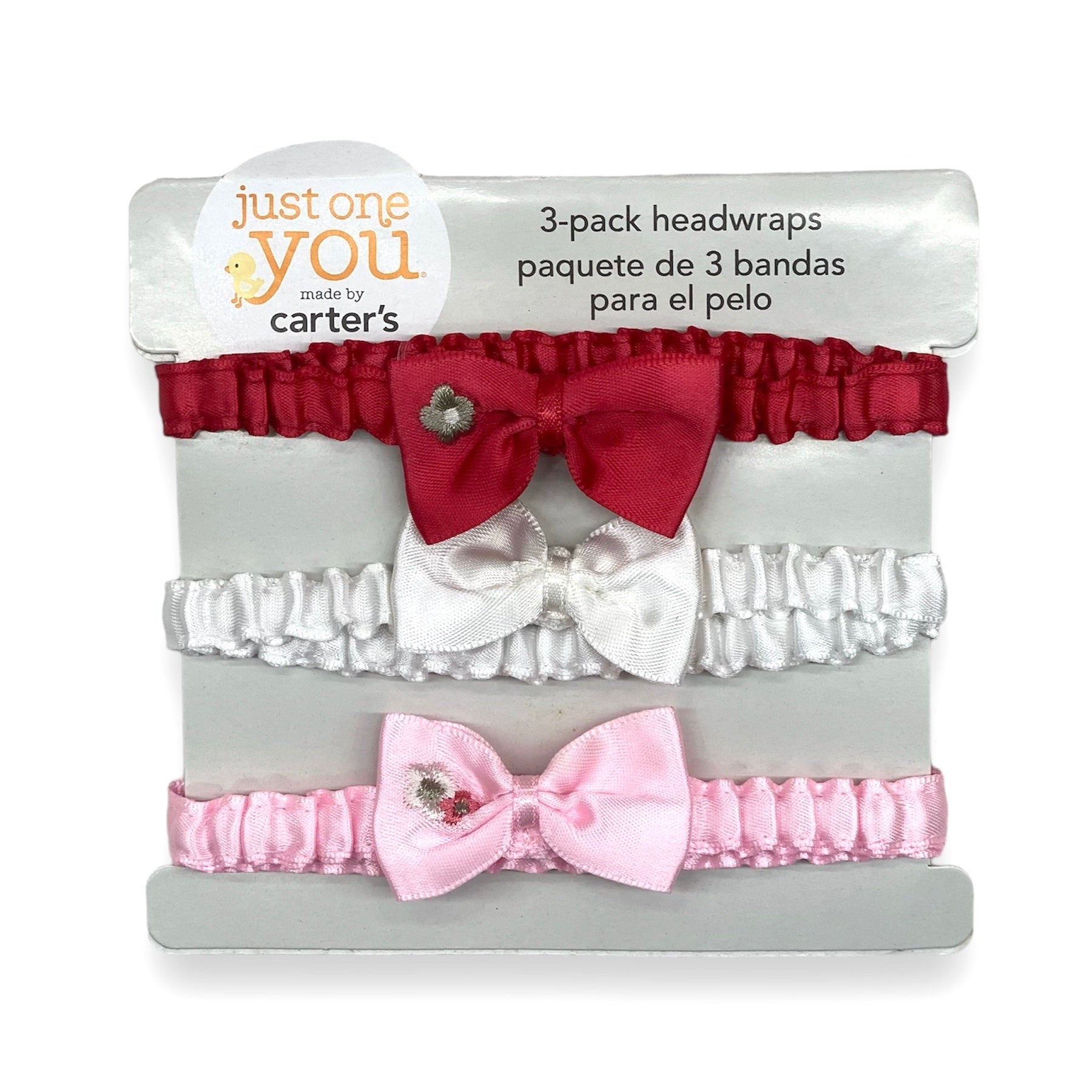 A Carter's 3PC Headband Set is likely to be a collection of three headbands designed for infants. These headbands may feature various designs, colors, and patterns to complement a baby's outfit. Common materials for baby headbands include soft fabrics like cotton or stretchy materials to ensure comfort.