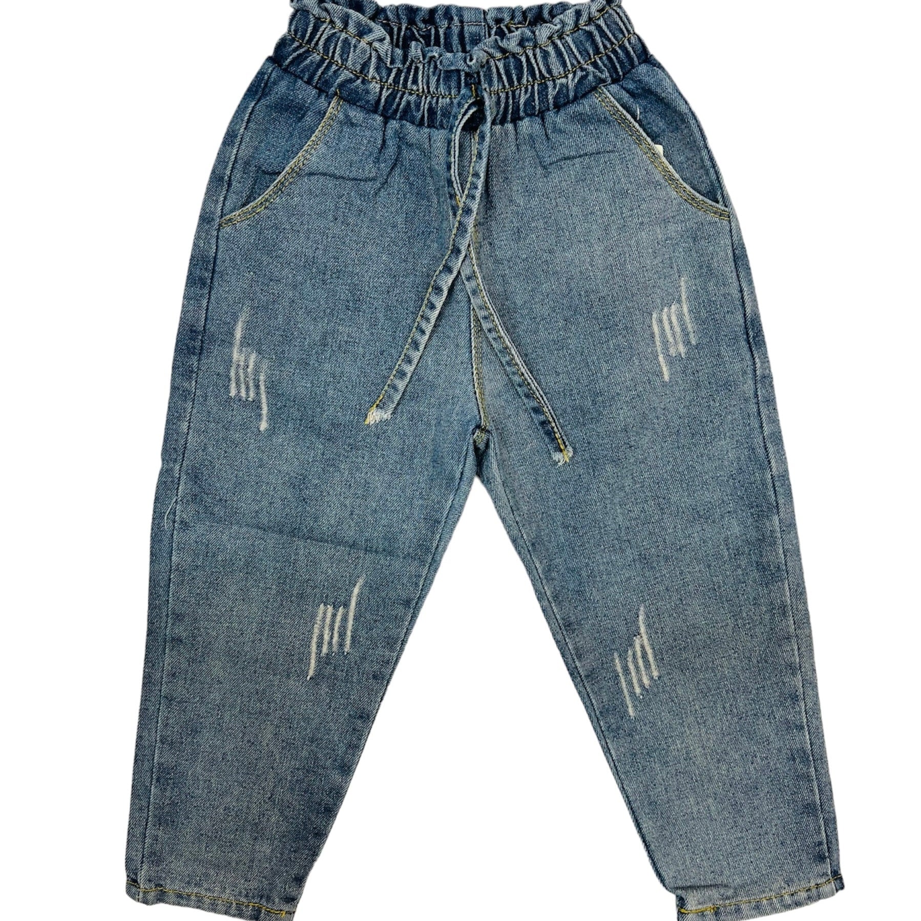This denim pant for baby girls features an elastic waistband for a comfortable fit. Made from high-quality denim material, this pant is perfect for all-day wear. The elastic waistband allows for easy dressing and movement, making it an ideal choice for active little ones.