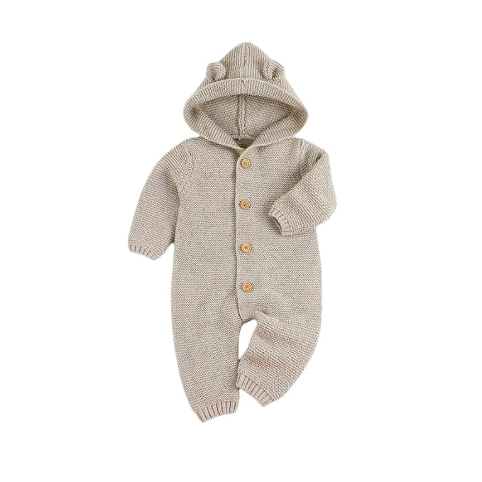 Stay cozy and stylish with our Front Open Hooded Romper in beige. Made with a front open design and a hood for added warmth, this romper is perfect for a chilly day! Stay on trend while staying comfortable.