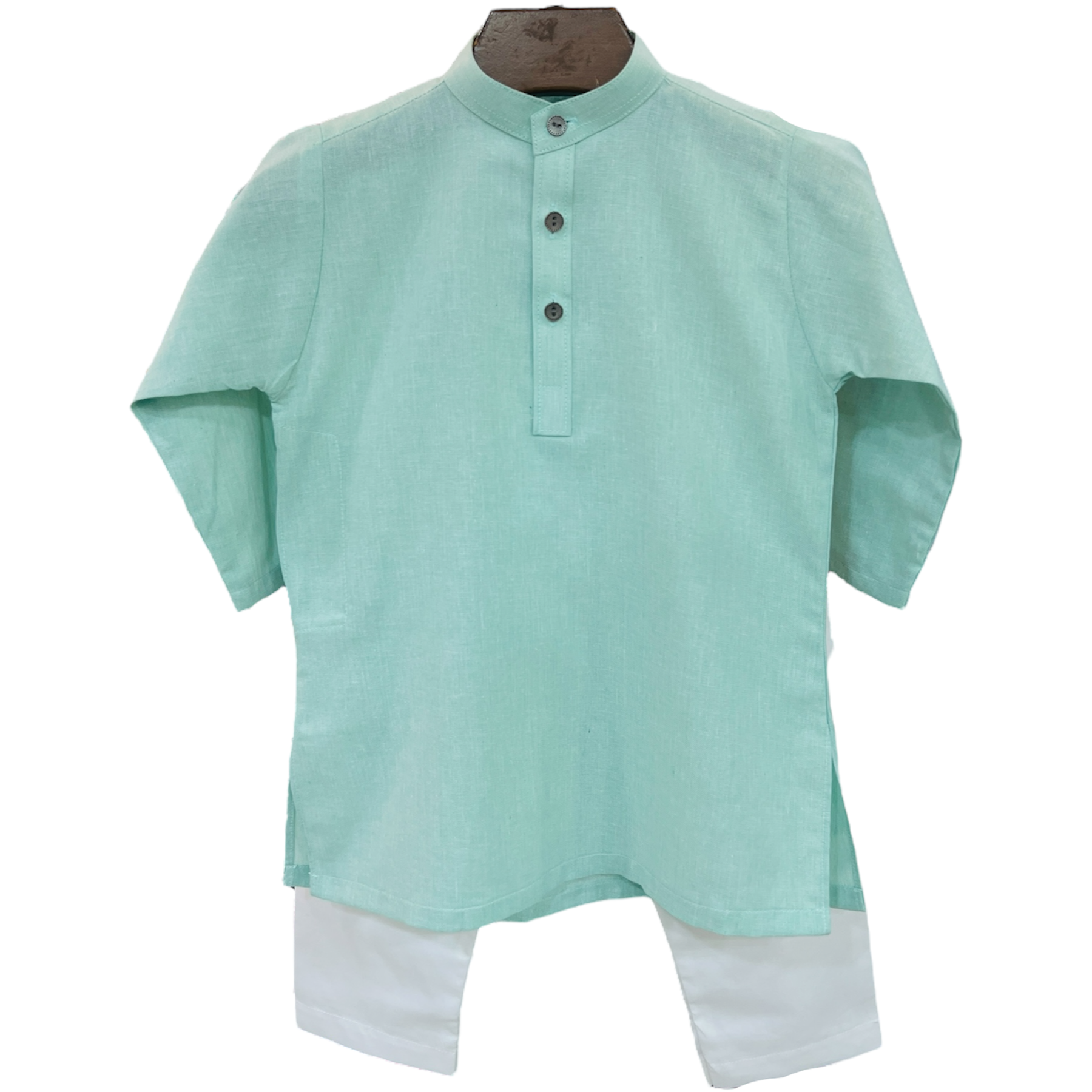 This Green Kurta Shalwar Set is the perfect addition to your baby boy's wardrobe. Made with high-quality fabric, it offers both comfort and style. The traditional kurta and shalwar combination, along with the vibrant green color, will make your little one stand out at any occasion.