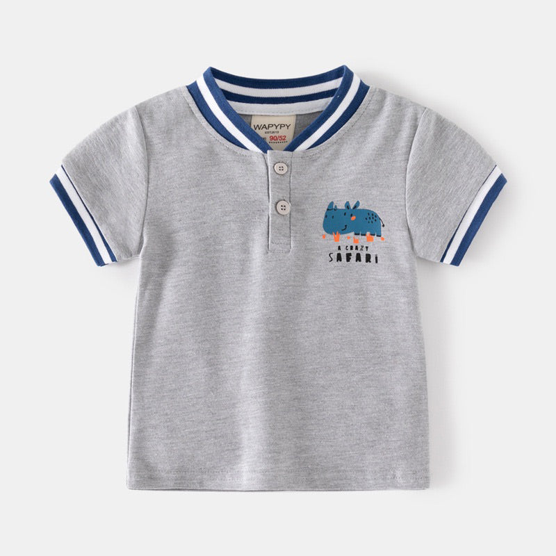 This Grey Crazy Safari T-Shirt is perfect for your little boy. The neutral grey color complements any outfit, while the playful safari animals add a touch of fun. Made with comfortable and durable material, this t-shirt ensures your baby's comfort and style. A must-have for any baby boy's wardrobe.