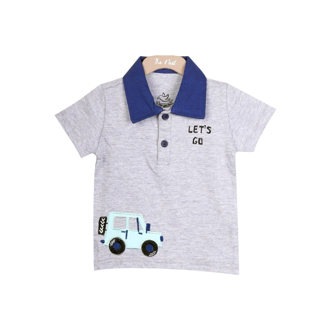 This grey polo t-shirt is the perfect addition to your baby boy's wardrobe. Made from high-quality fabric, it offers both style and comfort. The versatile grey color makes it easy to mix and match with any outfit. Give your little one a stylish and comfortable look with this grey polo t-shirt.