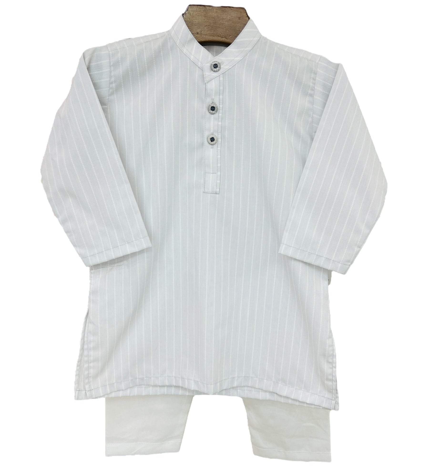 A Light grey kurta shalwar set for a baby boy can be a charming and traditional outfit. Hereâs a general description of what you might find in such an outfit: