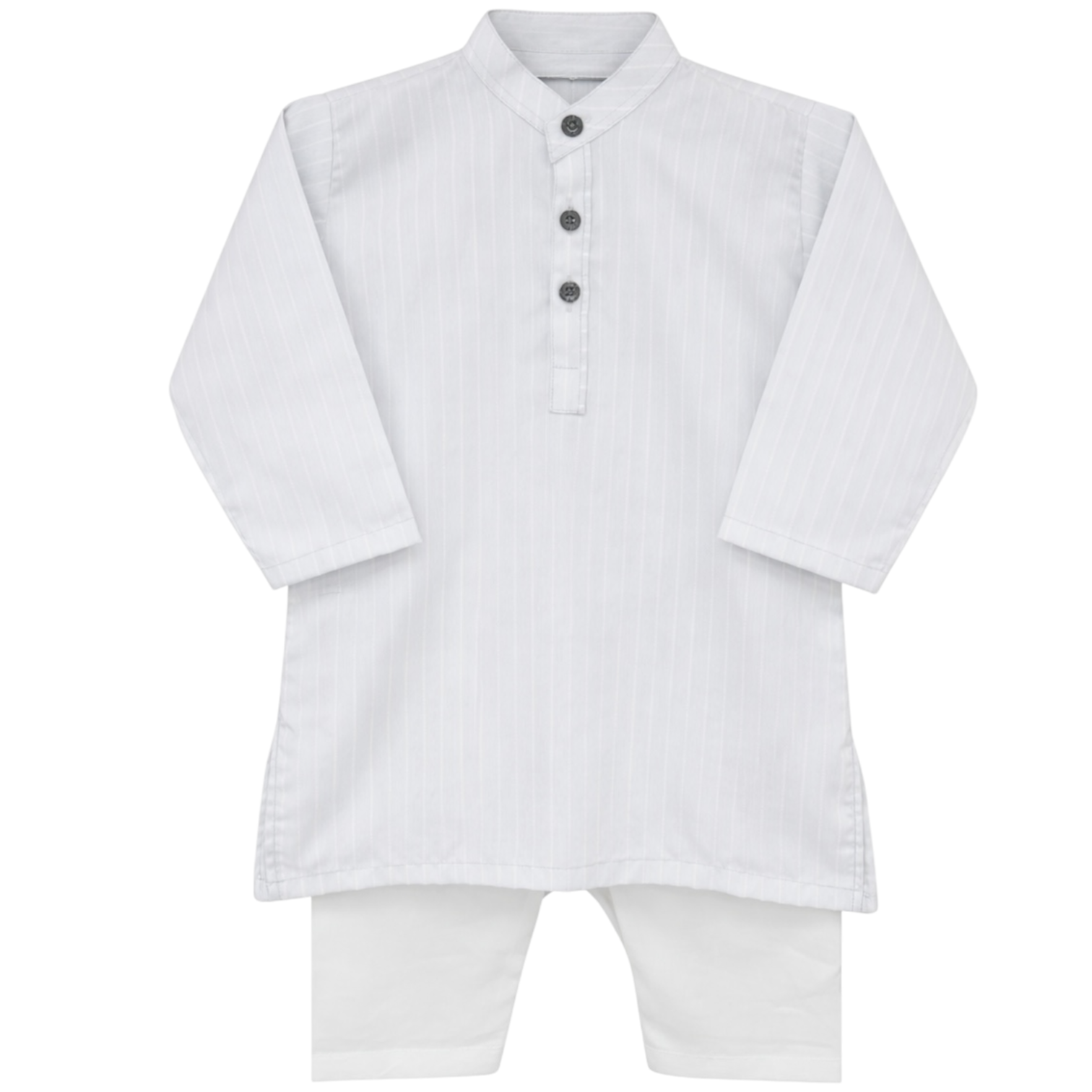 A Light grey kurta shalwar set for a baby boy can be a charming and traditional outfit. Hers a general description of what you might find in such an outfit: