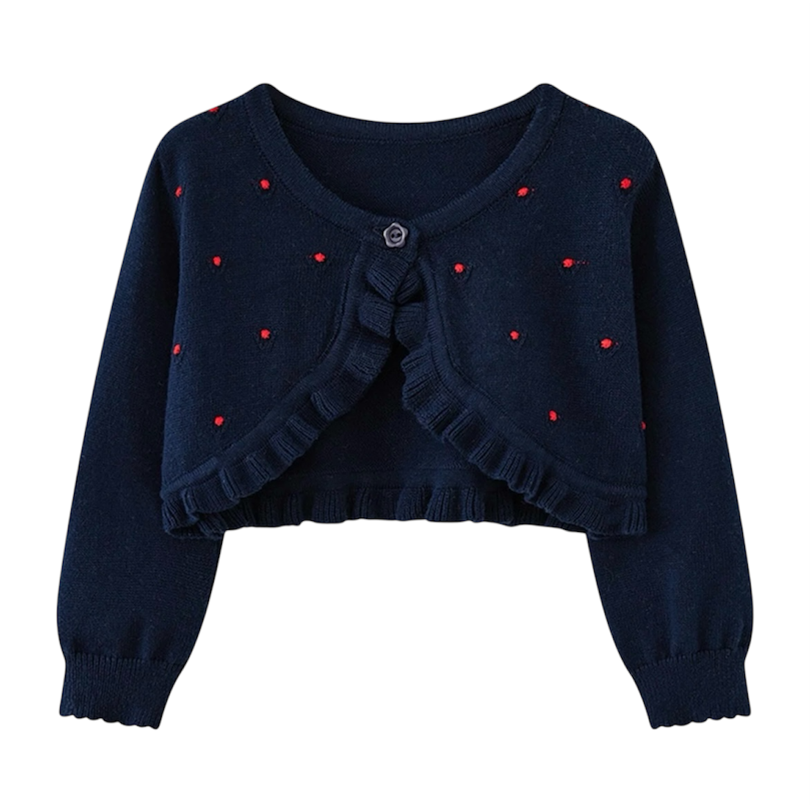 Introducing our Navy Blue Shrug for baby girl. Made from high-quality fabric, this shrug is perfect for adding a touch of style to any outfit. With its versatile navy blue color, it can be paired with any dress for a cute and fashionable look. A must-have for any little one's wardrobe.