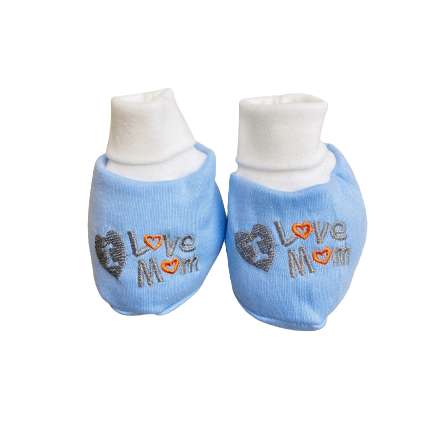 Design: The booties are usually designed with simplicity and practicality in mind. They often feature a slip-on style with an elastic or stretchy opening, making it easy to put them on and take them off. The design ensures a snug and secure fit, so the booties stay in place on the baby's feet.