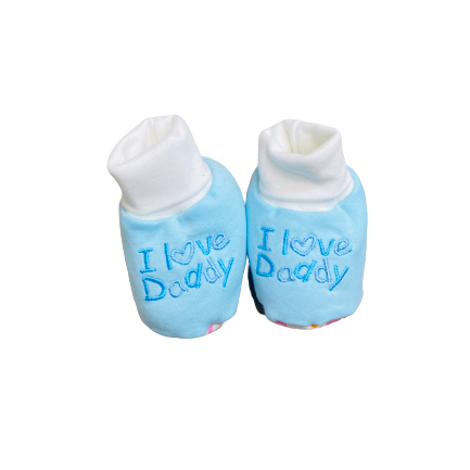 Design: The booties are usually designed with simplicity and practicality in mind. They often feature a slip-on style with an elastic or stretchy opening, making it easy to put them on and take them off. The design ensures a snug and secure fit, so the booties stay in place on the baby's feet.