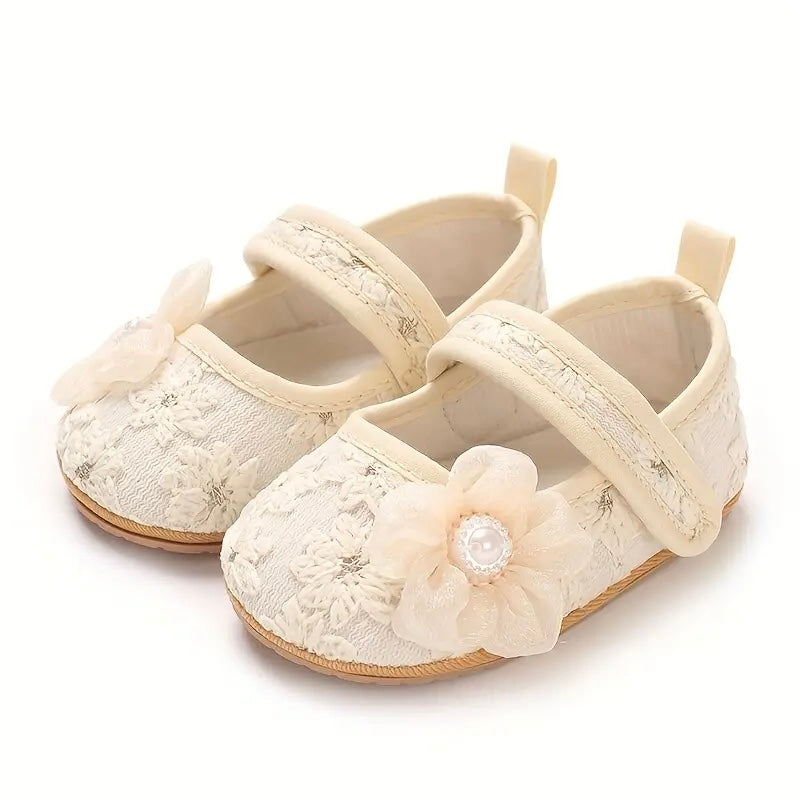 Introduce your little girl to the world in style with our Off White Pre Walker Pumpes. These elegant shoes are perfect for those early steps and provide support and comfort for your baby. Crafted with a soft sole and a secure fit, they are ideal for delicate feet.