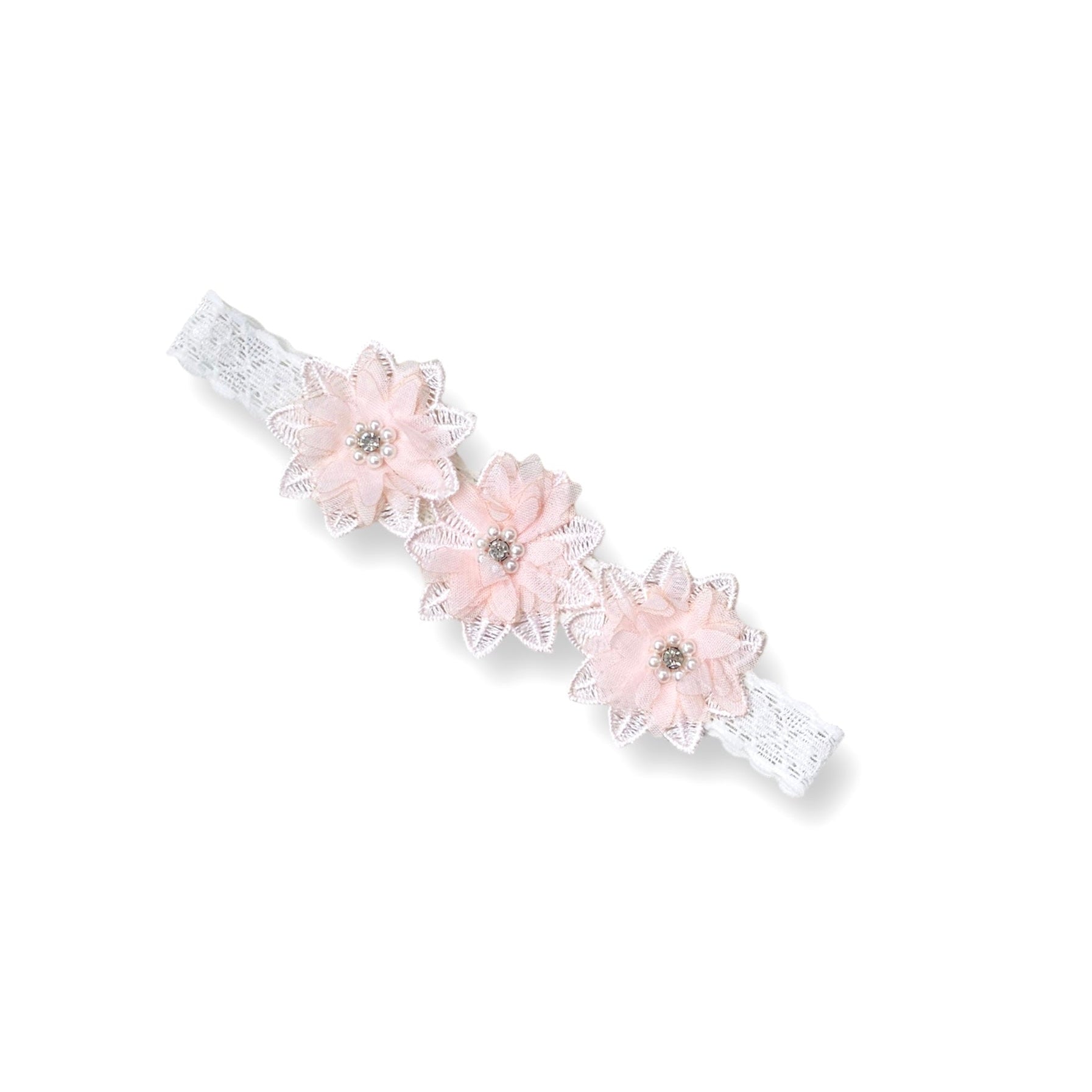 A Peach flower baby headband is likely a soft and comfortable headband designed for babies, usually with an elastic or stretchy band that fits around the baby's head. The key feature of this headband would be a peach-colored fabric or a fabric with peach-colored floral accents