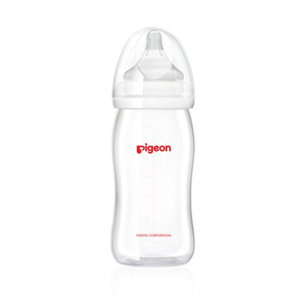 Looking for a perfect feeding bottle for your baby Buy this Pigeon peristaltic plus feeding bottle. This bottle has a perfect shape, making it so easy for your baby to hold it. Itâs made of a totally non-toxic, BPA-free material. Its nipple is specially designed to provide a real-like feeling to your baby while feeding. Volume: 330 ml.