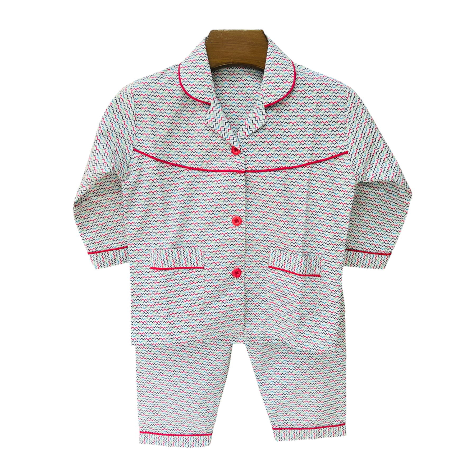 Keep your baby cozy all night with our 2-piece cotton night suit, designed for soft, gentle sleep. This set includes a breathable cotton shirt and matching trousers, perfect for bedtime or lounging at home.
