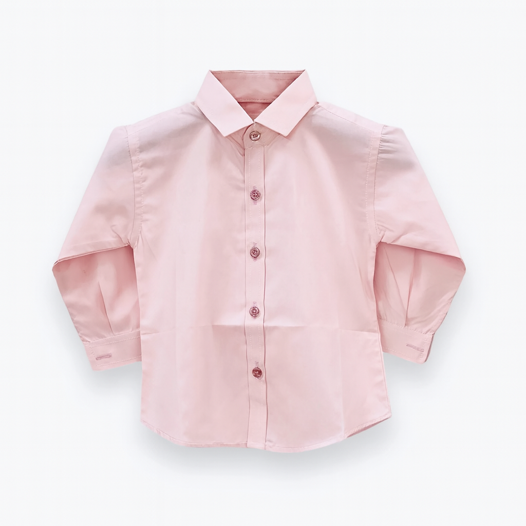 The shirt features a crisp Pink hue, providing a clean and elegant canvas for various styling options. Its button-down front and pointed collar create a traditional and refined look suitable for boys.