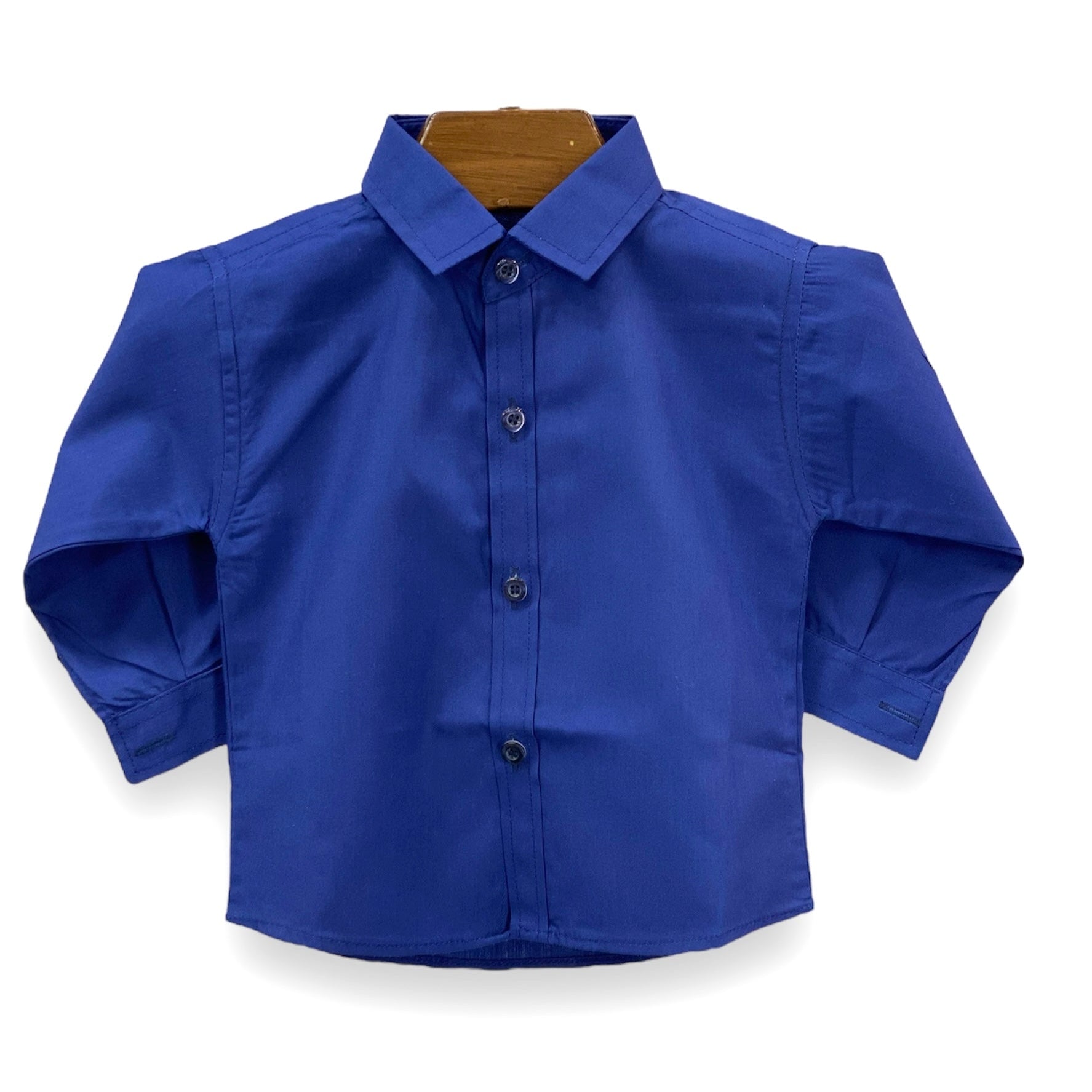 The shirt features a crisp Royal blue hue, providing a clean and elegant canvas for various styling options. Its button-down front and pointed collar create a traditional and refined look suitable for boys.