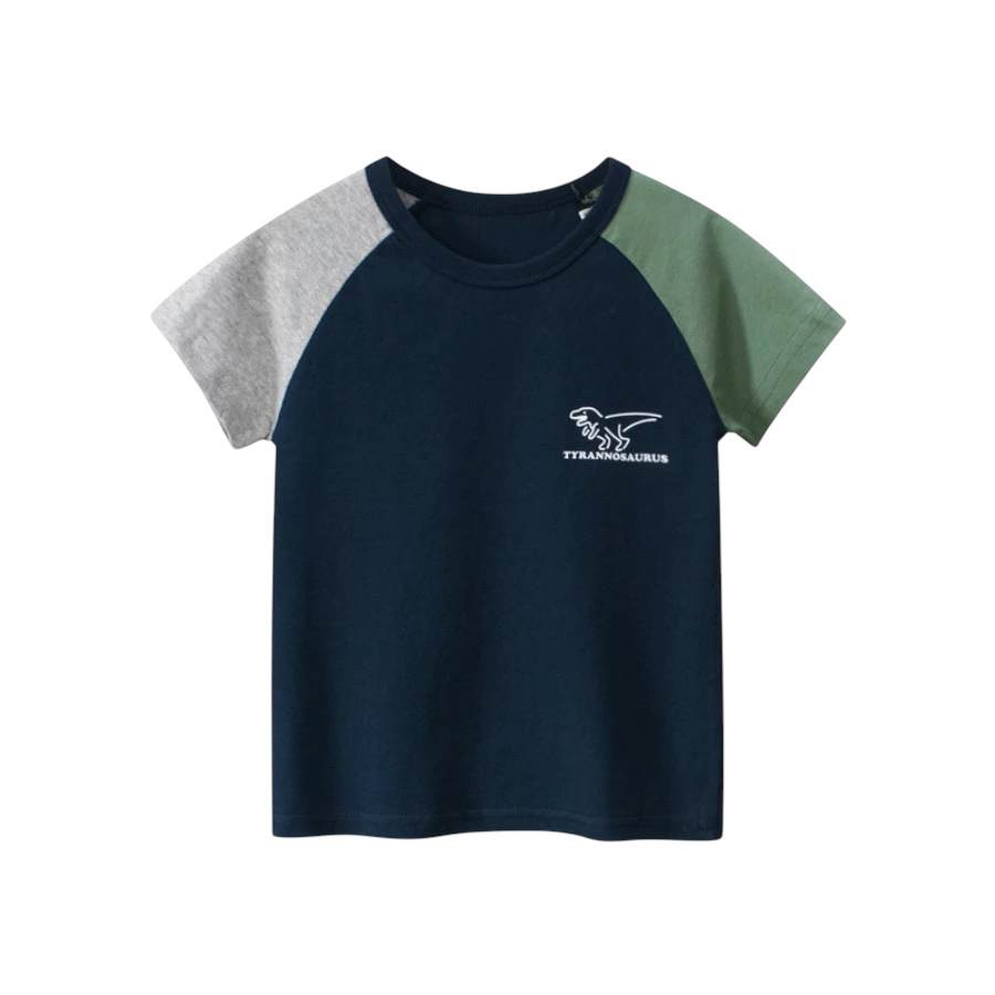 This Round Neck Dino T-Shirt is perfect for your little one. Made from soft, breathable fabric, it features a playful dino design on the front. The round neck design ensures comfort while the quality material ensures durability. A must-have for any baby boy's wardrobe.