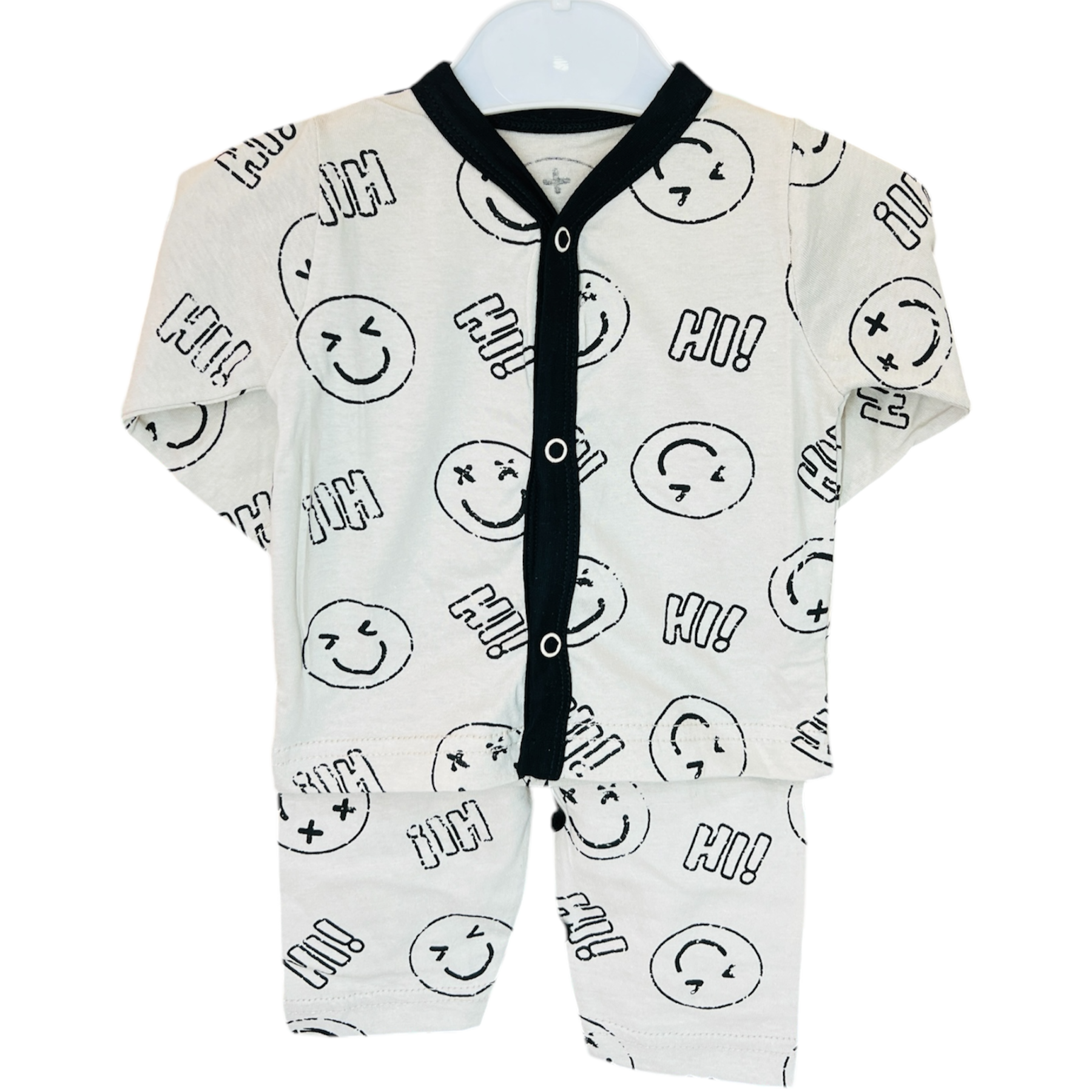 Experience ultimate comfort and style with our Smiley Pyjama Suit. Made from high-quality materials, this suit will keep you cozy and stylish all night long. Its unique design features a charming smiley pattern, adding a touch of fun to your sleepwear collection. Sleep peacefully and Wake up to a good mood with our Smiley Pyjama Suit.