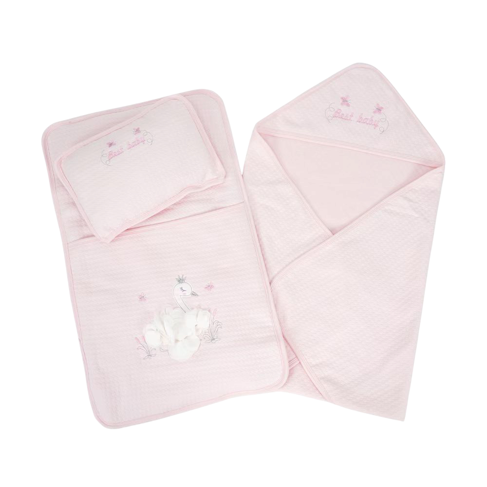 Create a cozy, coordinated space for your little one with the Sunnozy 3PC Carry Nest Set, designed in a soft pink tone with a playful pelican print. Made from soft, breathable materials, this newborn set includes a carry nest, a matching wrapping sheet, and a baby pillow — perfect for keeping your baby snug and supported whether at home or on the go.