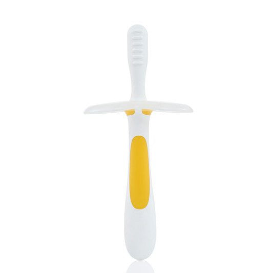 Insert safety shield from the toothbrush head. Push safety shield down until it snaps on securely. Allow baby to gently massage their teeth and gums.