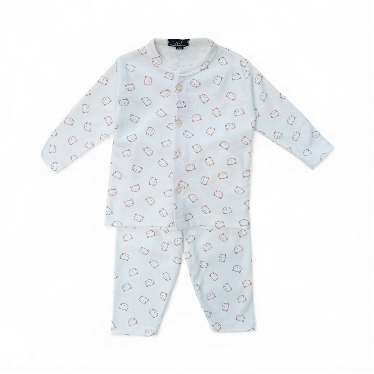 This 2PC Pajama Night Suit for baby boys features a charming bear print and is designed for comfort and style. Made with high-quality materials and careful attention to detail, it's the perfect addition to your little one's sleepwear collection. Keep your baby cozy and adorable all night long.