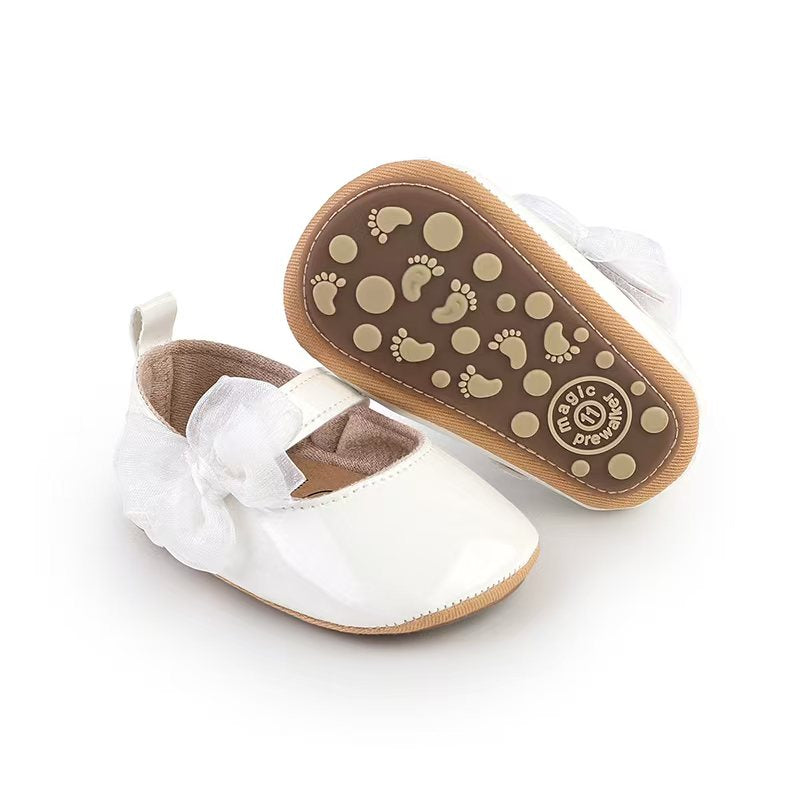 These White Bow Pre Walker Pumps are perfect for little ones aged 0-12 months. Made with a soft white material and adorned with a delicate bow, these pumps provide both style and comfort for your baby's early steps. Keep your little one looking cute and feeling supported with these pre walker pumps.