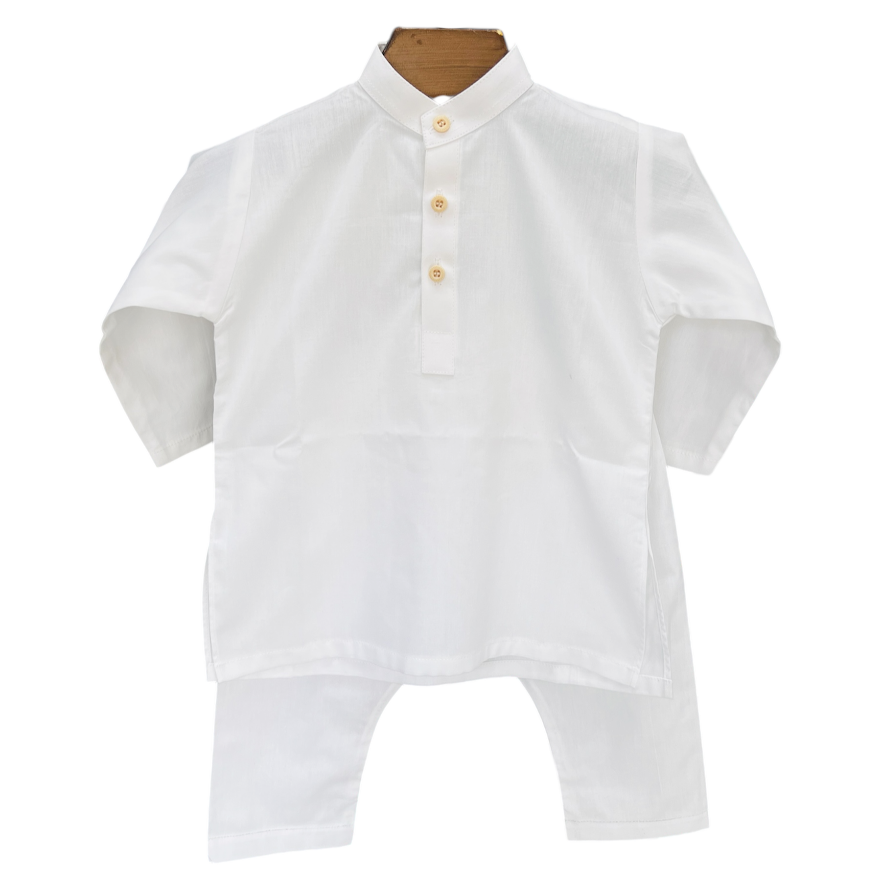 This White Kurta Shalwar Set is the perfect addition to any baby boy's wardrobe. Made with soft and comfortable fabric, it provides a stylish and traditional look. This set includes a white kurta and shalwar, making it a versatile and practical option for everyday wear. Dress your little one in this set for a classic and elegant look.