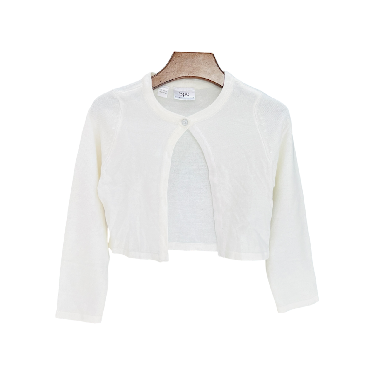 This white shrug for baby girls is crafted from soft jersey cotton, providing gentle warmth and comfort. Its lightweight design makes it perfect for layering over dresses or tops, ensuring your little one stays cozy without overheating. The breathable fabric adapts to delicate skin, making it an ideal choice for both indoor and outdoor wear during mild weather. A versatile addition to any baby’s wardrobe, combining practicality with subtle style.